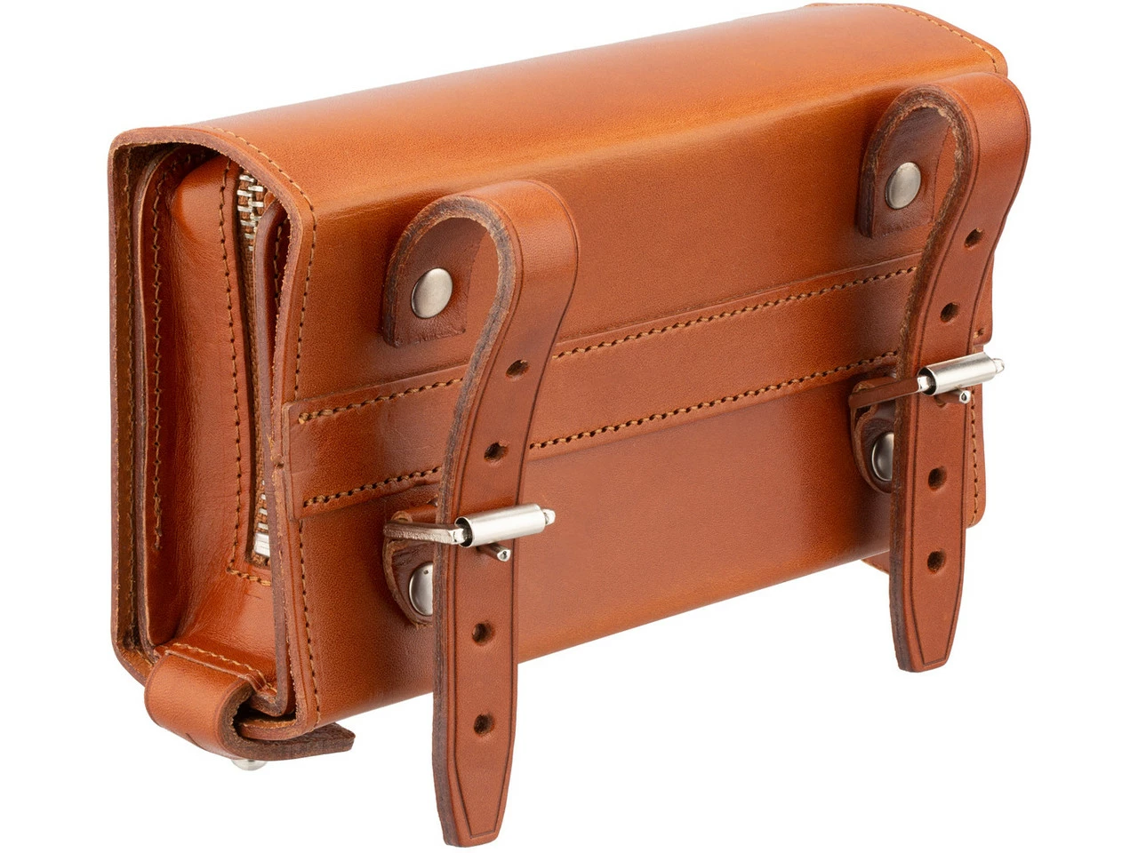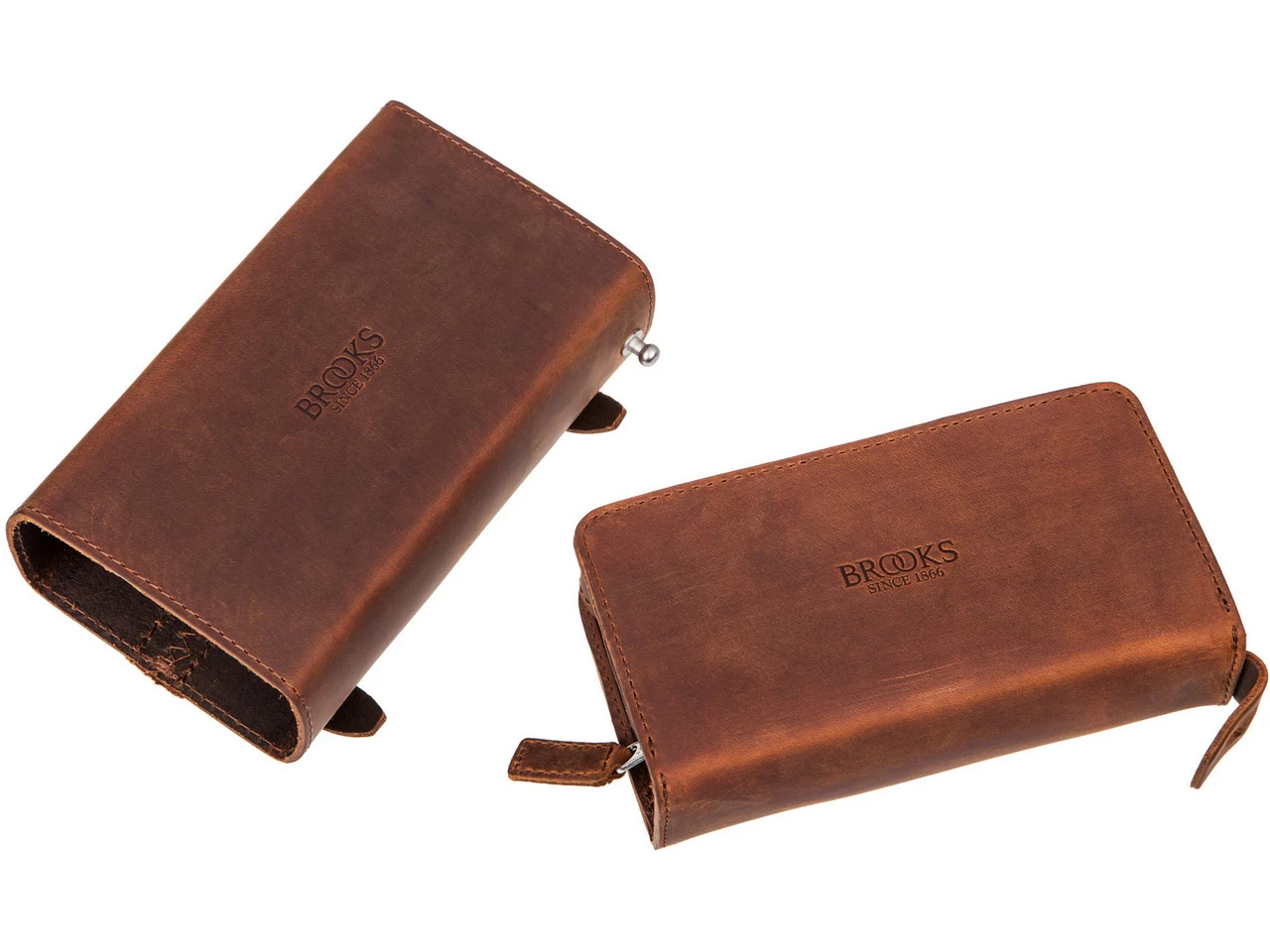 Die D-Shaped Satteltasche tauchte schon im Jahr 1910 in Brooks Katalogen auf. Das innovative Design besteht aus zwei Elementen. Die Außentasche kann am Rad montiert bleiben, während man die innere Tasche im Portemonnaie-Style herausnehmen kann.