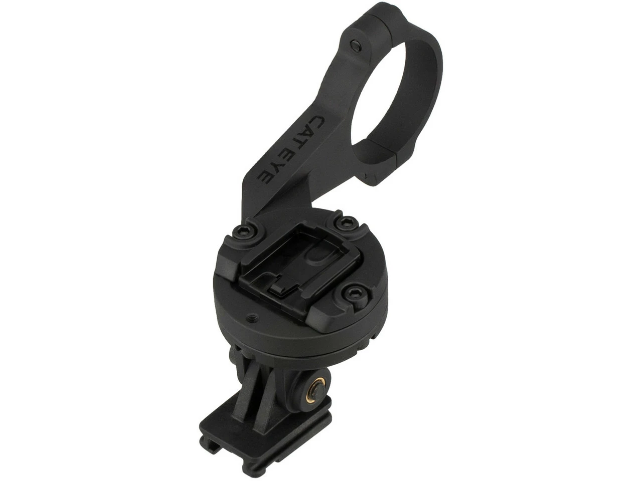 Der OF-200 von CATEYE ermöglicht es Dir Deinen Fahrradcomputer zentral vor dem Vorbau zu positionieren und zugleich noch eine Lampe oder Actionkamera darunter zu befestigen.