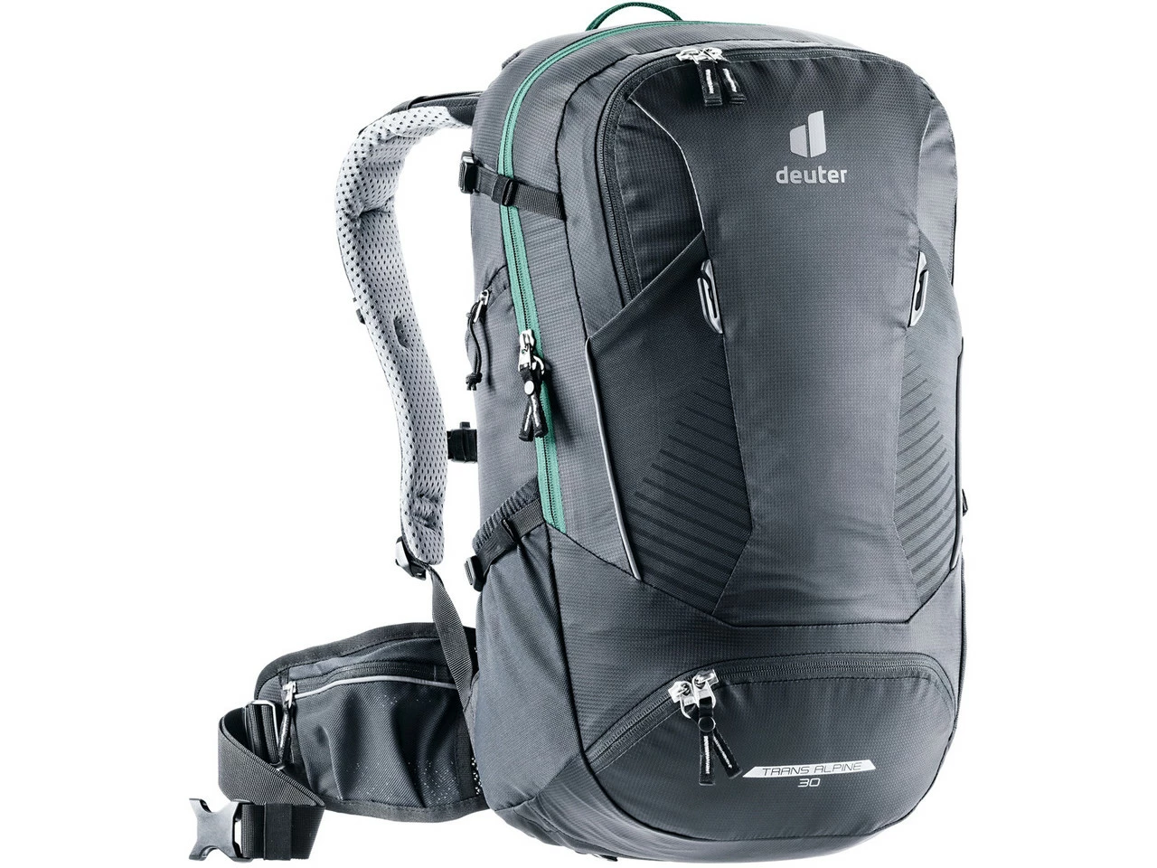 Spezifikationen:Einsatzbereich:All MountainAusführung:AllroundrucksackVolumen:30 LiterTrinkblasenfach:3 LiterTechnische Daten:Material:210D PolyamidFeatures:2 AußentaschenOrganizer-Fachstufenlos verstellbarer BrustgurtBrillenhalterungNetzhüftflossenHelmhalterungWertsacheninnenfachStretch-InnenfachVorrichtung für Trinksystem (3.0 Liter)ReflektorKontaktrückenLuftpumpenfachSitzmatteanpassbare SchienenLageverstellriemenBodenfachSmartphone TascheSOS-LabelRegenhülleKompressionsriemenHerstellernummern:black:320022170000lapis-navy:320022113160clay-marine:320022163140Lieferumfang:1 x Rucksack deuter Trans Alpine 30