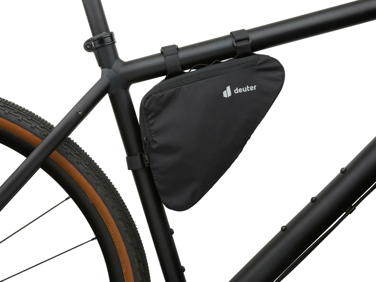 Die Triangle Front Bag Rahmentasche von deuter hat ein Volumen von 1,7 Liter und wird im hinteren Rahmendreieck befestigt.