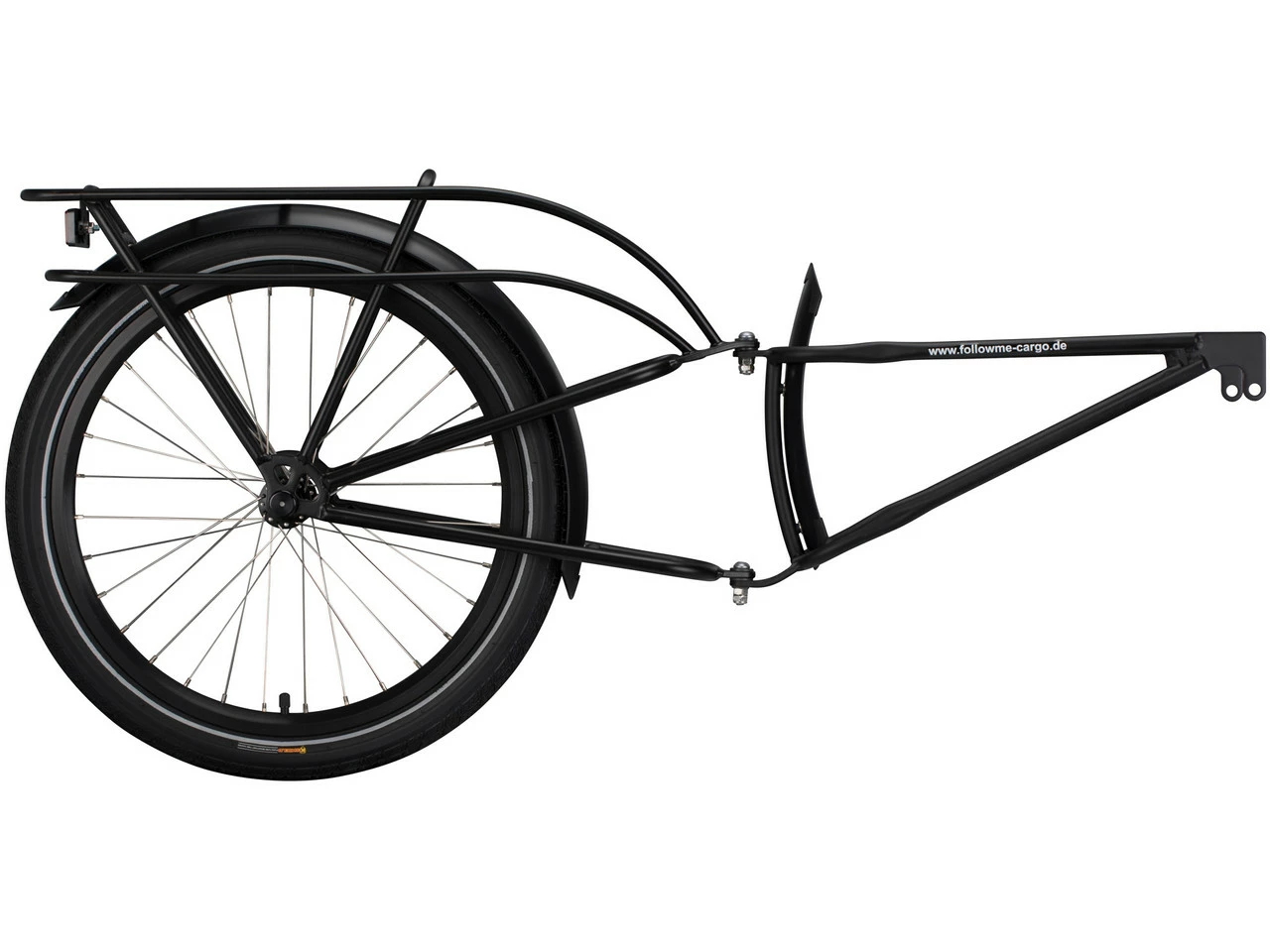 Spezifikationen:Ausführung:LastenanhängerLaufradgröße:20″Technische Daten:Bremse:NeinFederung:NeinRahmenmaterial:StahlFreigaben:Zuladung max.:28 kgEmpfohlene Reifenbreite:bis 2,6″Features:Puncture-Protection-Bereifung mit Reflexstreifenplatzsparende Unterbringung, da zusammenklappbarLieferumfang:1 x Transportanhänger FollowMe Cargo1 x Schnellspannachse mit Hohlachse2 x Flügelschraube mit Sicherungssplint
