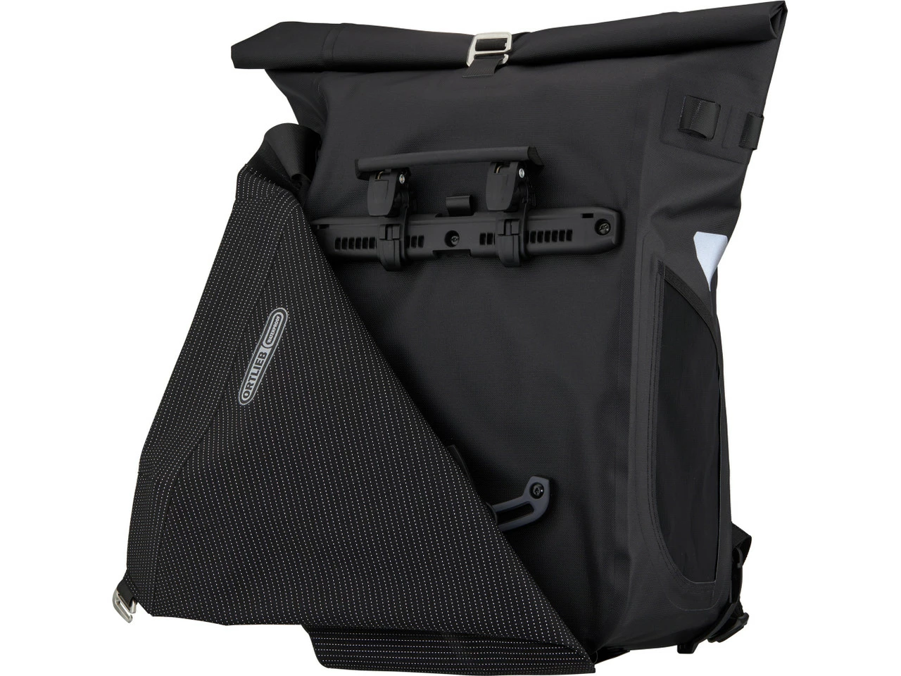 Features:Gepäcktasche und Rucksack in einem mit High-Visibility-Effekterhöhte Sichtbarkeit dank unauffällig eingearbeitetem Reflexgarn an der Flap-Lascheals Gepäcktasche oder Rucksack verwendbar: Halterungssystem auf der einen, Rucksackträger auf der anderen Seiteeinfacher Wechsel durch Umschlagen der Flap-LascheTasche mit wasserabweisendem Reißverschluss in der Flap (zugänglich im Rucksack-Modus)Quick-Lock2.1-Halterungssystem mit oberen und unteren Arretierungshaken an der TascheRollverschluss mit Verschlusshaken, von oben komprimierbar bis zu den HalterungselementenInnentasche mit Fach für Laptops bis 36 x 24,5 x 2,5 cm (15,6″ )eine Netztasche an der Seiteergonomische Schulterträger, Brustgurt und bequeme RückenpolsterEinstellbänder der Schulterträger gegen Verheddern an den Trägern eingeschlauftzwei Reflektorenaus robustem, wasserdicht beschichtetem NylonPVC-freiMade in GermanyTechnologie:Quick-Lock2.1-Halterungssystem